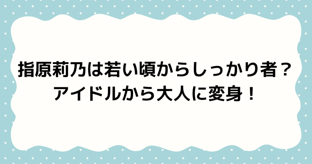 指原莉乃は若い頃からしっかりもの?アイドルから大人に変身!