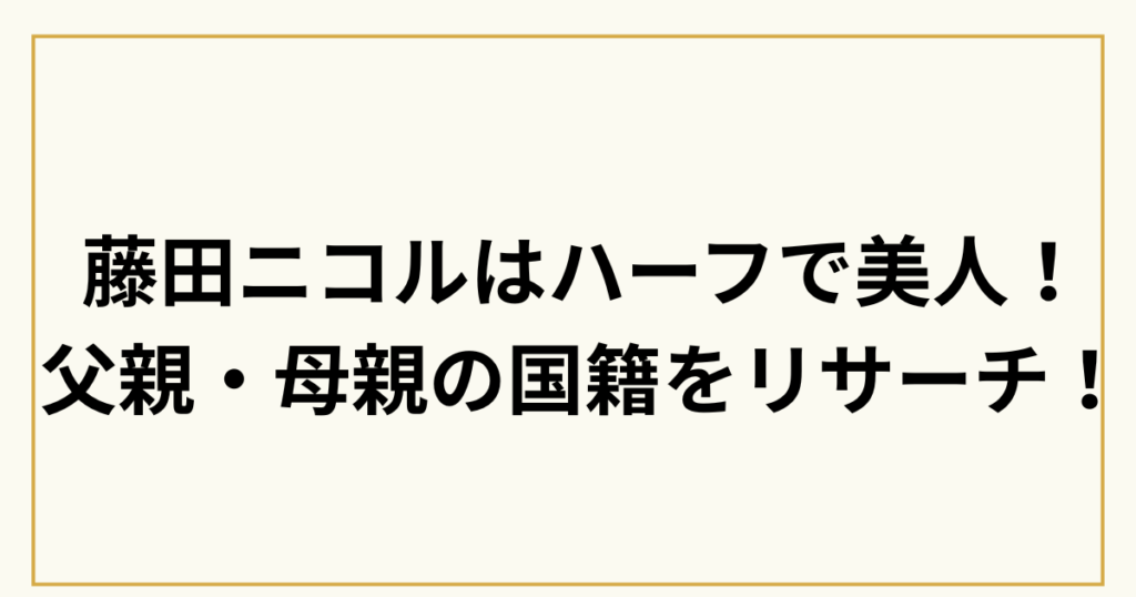 モデル、タレント、Youtuberとしてご活躍の藤田ニコルさん。 そんな藤田ニコルさんですが、まず、そのハーフ系美人の魅力に迫ります。 又、ご両親の国籍が気になりますよね。 そこで今回の、この記事では 藤田ニコルさんはハーフで美人! 父親・母親の国籍... -