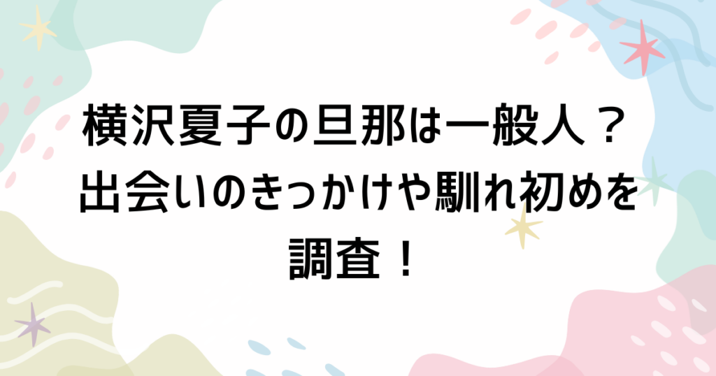 横沢夏子の旦那は一般人?出会いのきっかけや馴れ初めを調査!