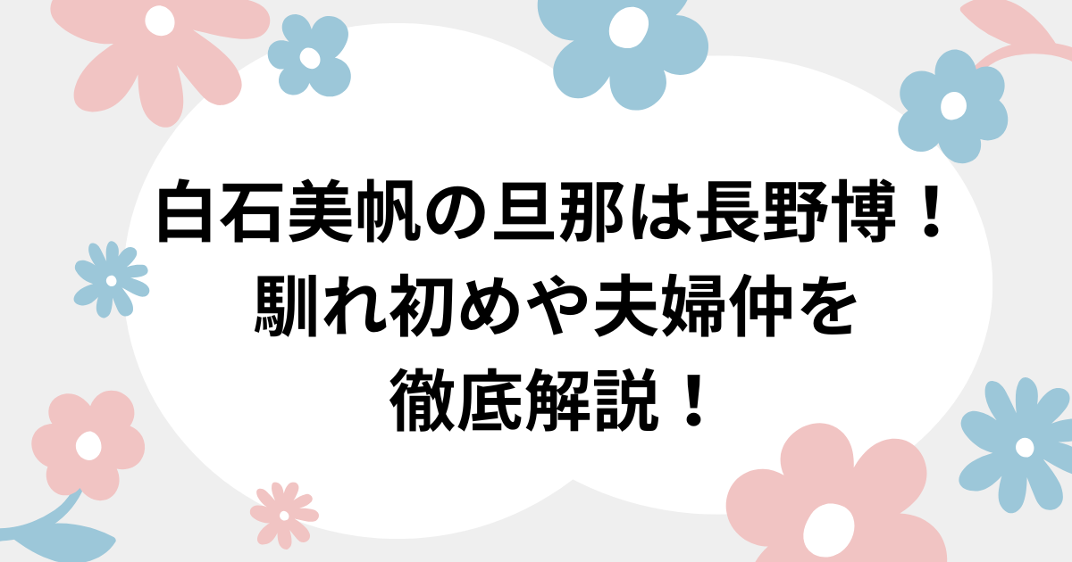 白石美帆さんの旦那さんは、元V6のメンバーで俳優の長野博さんです。